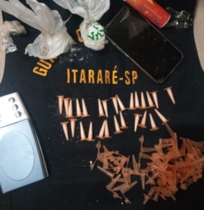 Foram apreendidos 27 pinos de cocaína cheios, mais de 30 gramas da mesma droga e outros 61 pinos vazios.